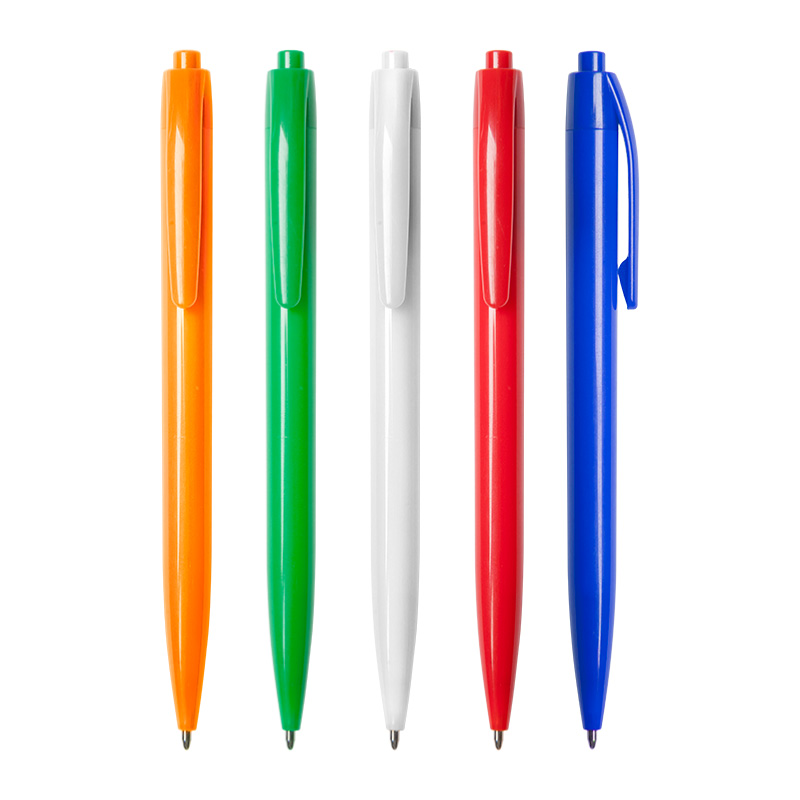 Plástico. Bolígrafo con cuerpo plástico de color con pulsador.