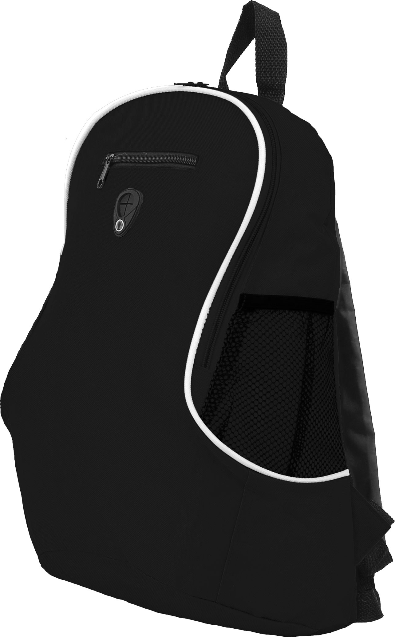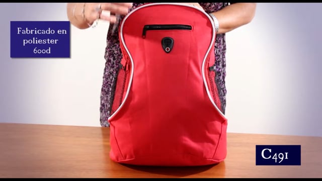 40 x 29 x 17,5 cm. Capacidad: 16 litros. aprox. (Indica el volumen, NO el peso). Poliéster 600D. Compartimento principal con bolsillo frontal con cierre. Dos bolsillos laterales de red porta bebidas. Correas ajustables. Cierres metálicos. Salida para audífonos.