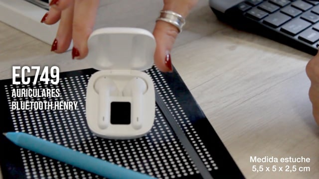 5,5 cm x 5 cm x 2,5 cm. (medida de la caja) 45 mm (auriculares). Plástico ABS. Audifonos bluetooth con imán, se conectan al celular de forma inalámbrica. Los audífonos cuentan con función touch en cada costado de los audifonos (izquierdo y derecho) para funciones de encendido, apagado, avance, retroceso, reproducción y pausar musica. Así como también para las funciones de responder, rechazar o finalizar una llamada. Estuche que permite cargar la batería de los auriculares. Indicador de batería del estuche. Base de carga 300 MAH . Audifonos: 30mAh Bluetooth V5.0. Rango de alcance 10 metros. Tiempo de reproduccion autónomo 3 horas aprox. Tiempo de carga de la batería 1 hora. Cable de carga USB tipo C. Duración de la batería en modo stand by: 40 hs. Presentación en caja de regalo.
