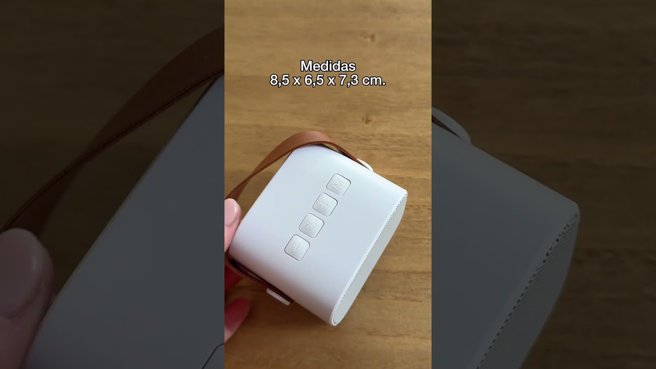Parlante Bluetooth estéreo con Radio FM, tarjeta TF y entrada AUX. Estructura plástica color blanco y asa en poliuretano color marrón. Cable de carga y conexión USB-C en color blanco. Incluye manual de uso.