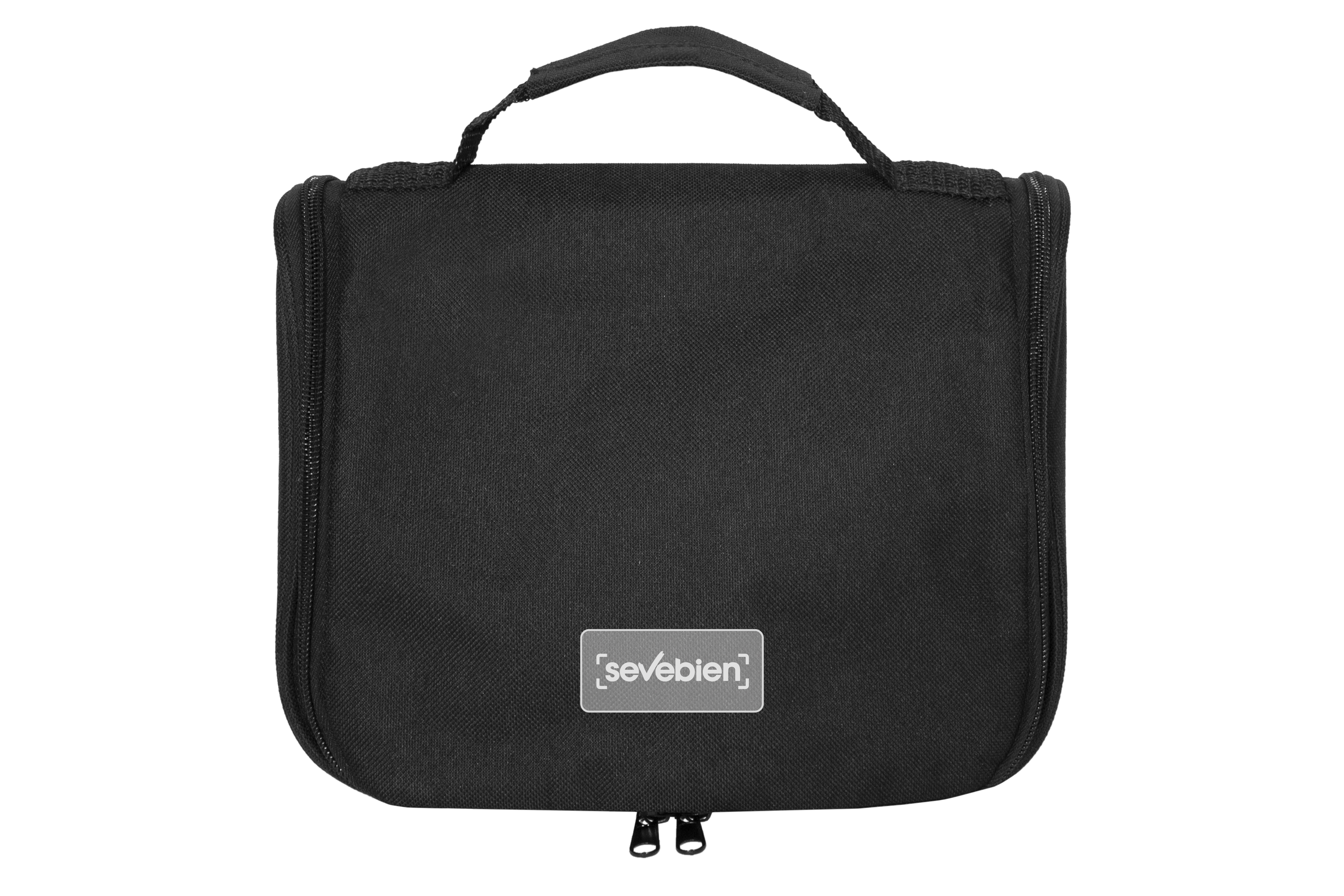25,5 x 19 x 8 cm Colgante. Con manija para transportar. Cierre de apertura completa. 2 compartimentos internos plásticos transparentes. 2 bolsillos internos de red. 1 compartimento interno inferior.