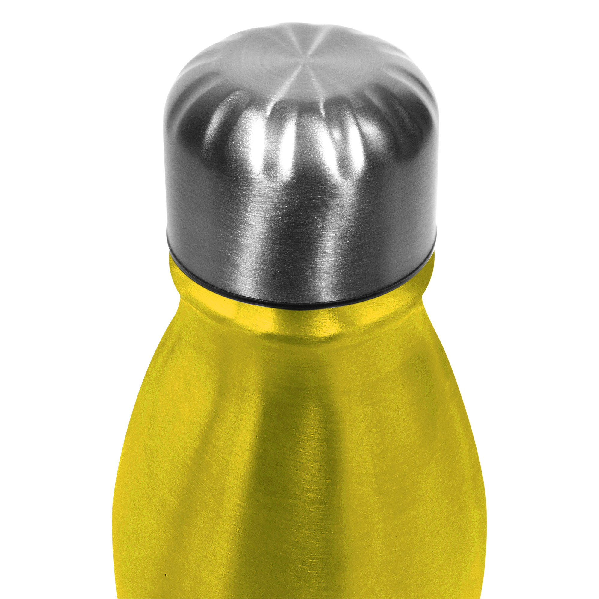 Ø 6 x 22,5 cm. Capacidad 550 ml. Aluminio. Botella de aluminio, cuerpo de diferentes colores.Tapa de acero a rosca.