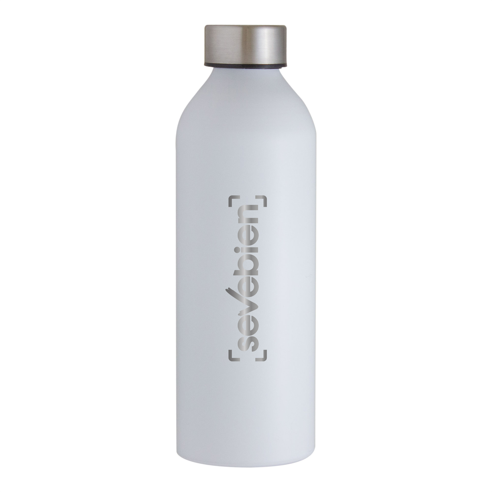 Botella de aluminio con acabado mate. Tapa a rosca color plata en acero inoxidable 201 y anillo de silicona antiderrame.