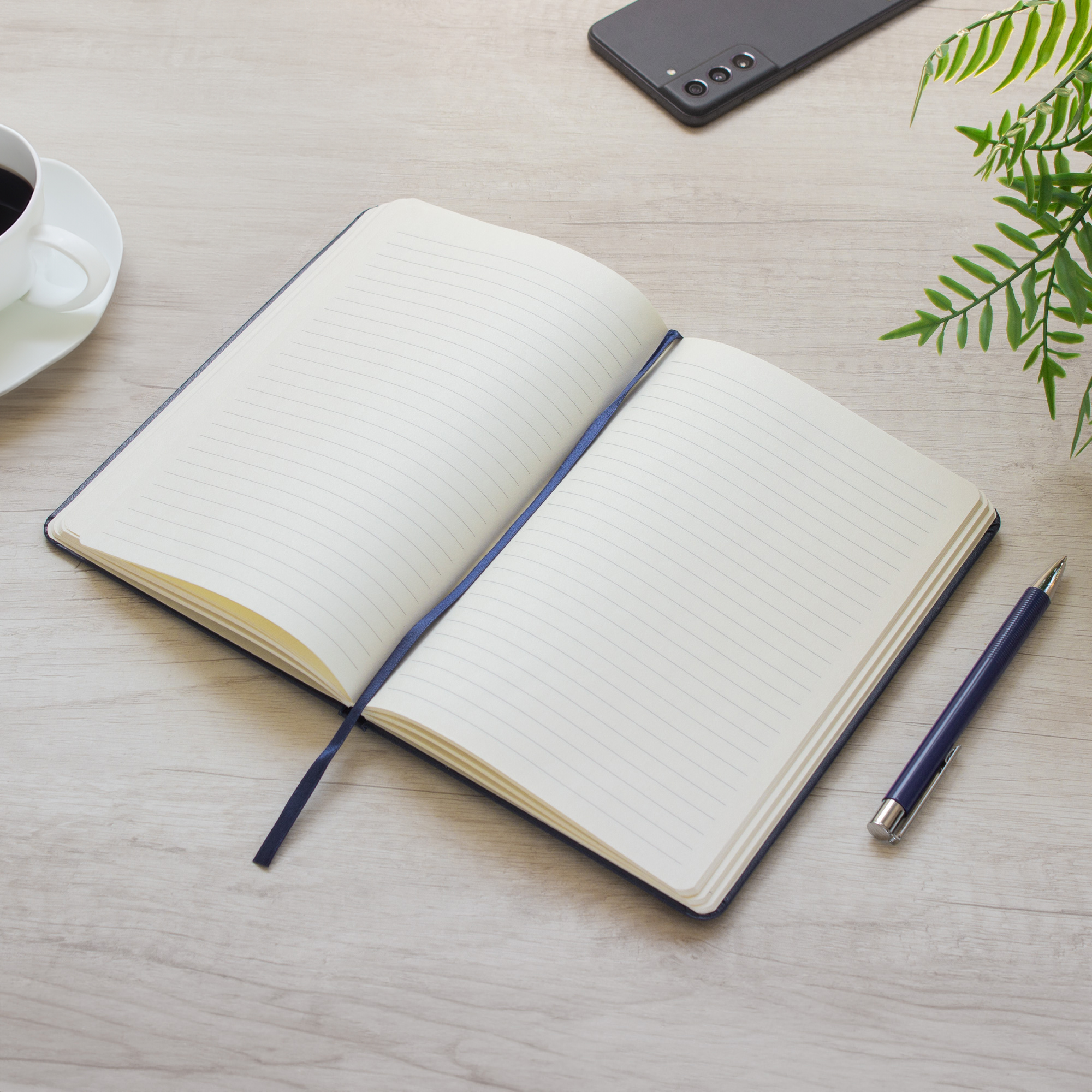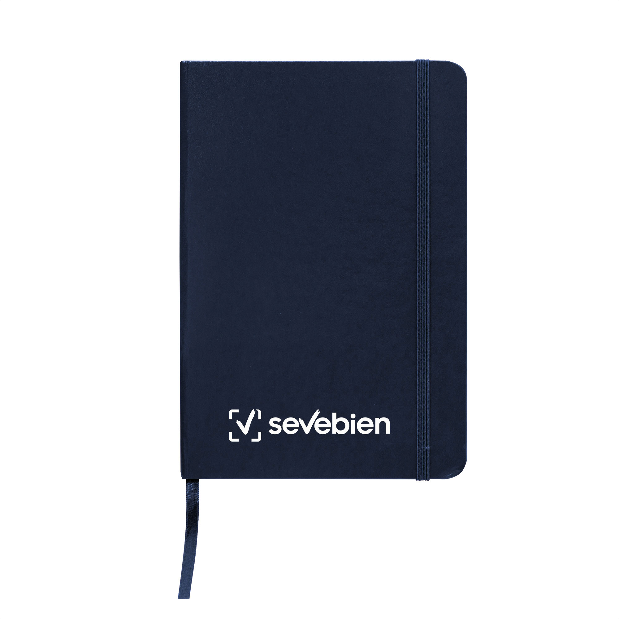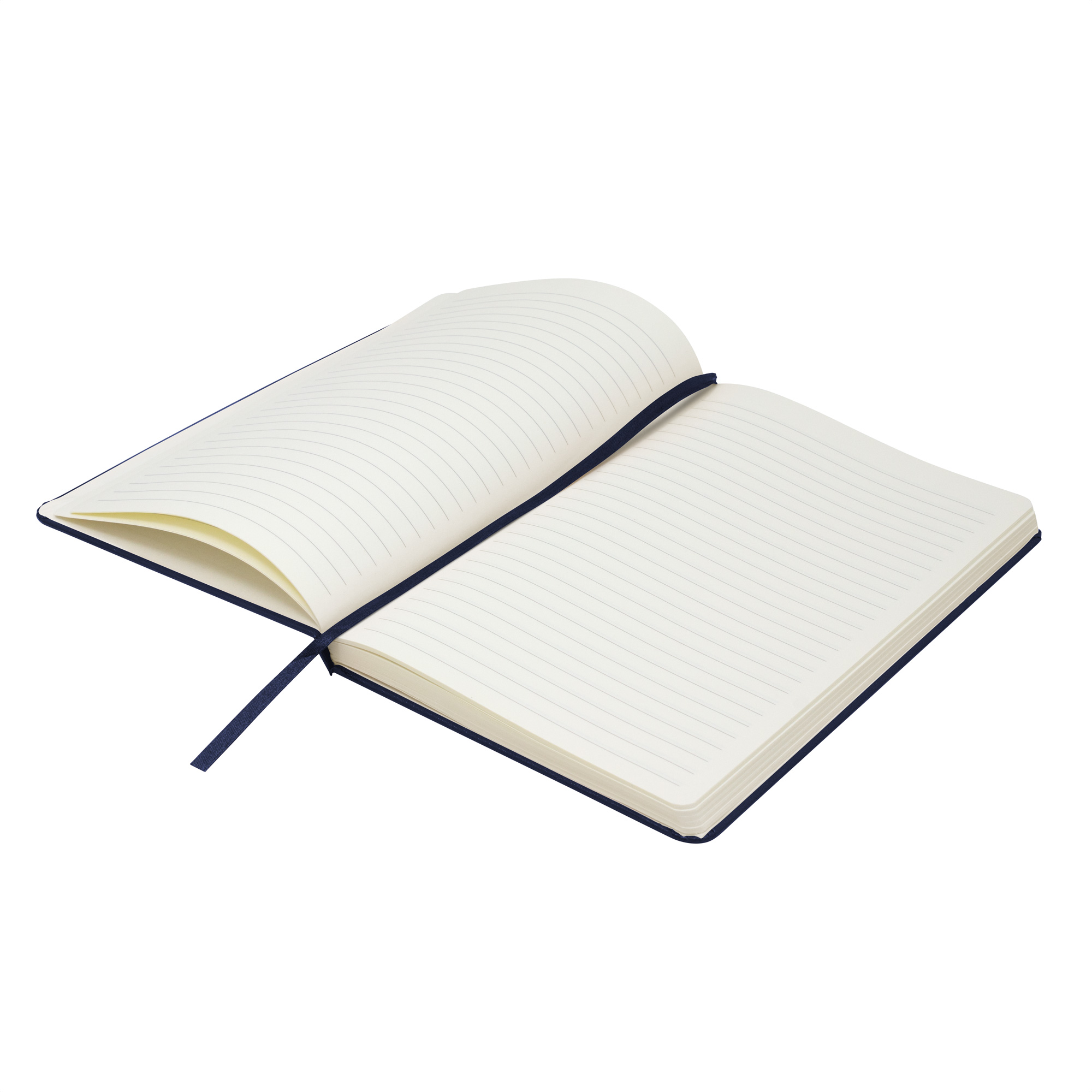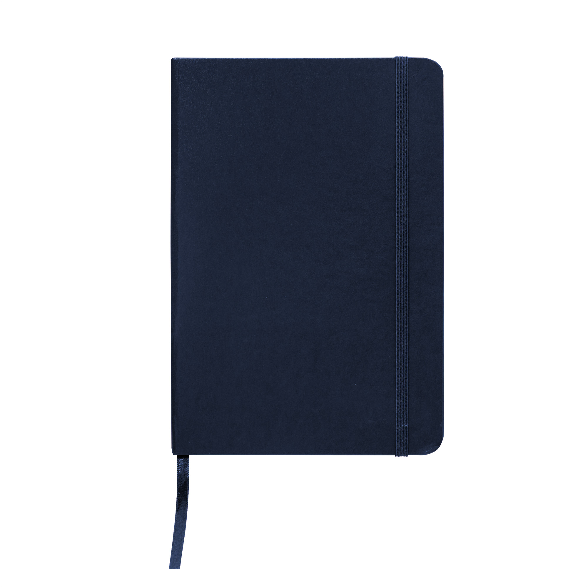Libreta. Tapa de cartón de 300g recubierta en poliuretano de diferentes colores. Interior de 80 hojas rayadas en papel obra crema de 70g. Encuadernación cosido. Incluye cinta señaladora del color de la tapa. Cierre con banda elástica del mismo color.
