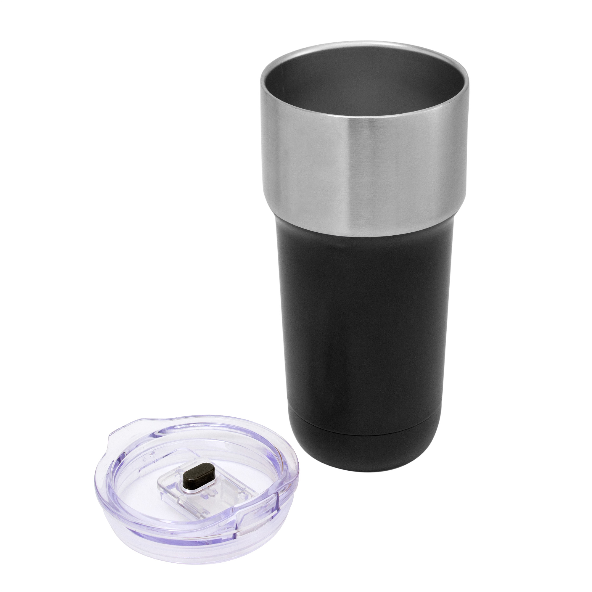 Mug doble pared, sellado al vacío. Mug con aislamiento térmico. Tecnología vacuum. Interior en acero 304 y exterior en acero 201. Tapa de poliestireno con anillo de silicona y detalles en color en juego con el cuerpo. Pintura powder coat (pintura más duradera y resistente a la corrosión y el paso del tiempo), parte superior en acero inoxidable. Mantiene hasta 12 hs la temperatura de las bebidas calientes y 24 hs de las bebidas frías.
